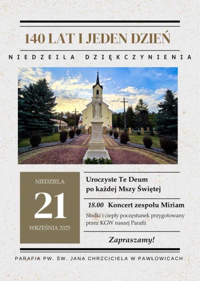 Informacja z profilu Parafia pw. św. Jana Chrzciciela w Pawłowicach