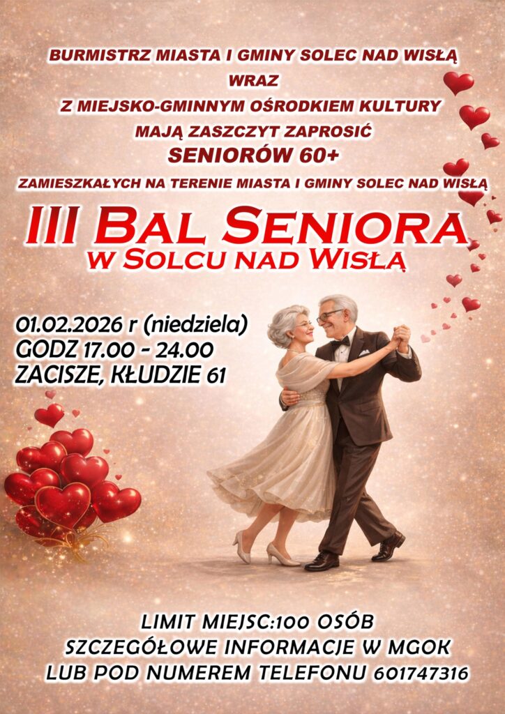 Bal Seniora w Kludziu (Solcu nad Wisłą) 9 stycznia 2026 MZ Rozrywka 0 Czas czytania: < 1 minutęOrganizatorzy zapraszają! bal senioraWspieraj MojeLipsko – pomóż nam się rozwijać