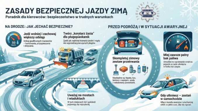 Intensywne opady śniegu i śliskie nawierzchnie wymagają od kierowców szczególnej ostrożności. Przestrzeganie kilku podstawowych zasad pozwala uniknąć poślizgów, kolizji i utknięcia w zaspach.