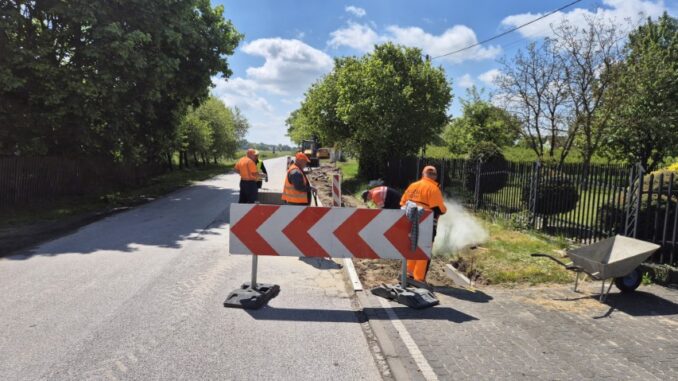 Prace wykonują pracownicy Powiatowego Zarządu Dróg Publicznych w Lipsku.