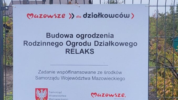 Pomyślnie i przedterminowo zakończona została realizacja zadania pn. „Budowa ogrodzenia Rodzinnego Ogrodu Działkowego RELAKS”, które otrzymało Pomoc Finansową w formie dotacji celowej z budżetu Województwa Mazowieckiego w ramach Mazowieckiego Instrumentu Aktywizacji Działkowców „Mazowsze dla działkowców 2025”.