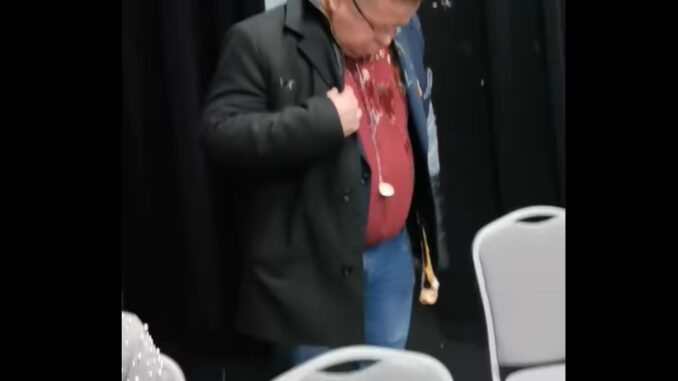 Jedno jajko jednak nie wystarczyło. Po chwili burmistrz dostał kolejnym jajkiem w twarz.