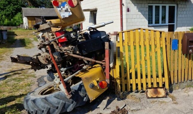 Siła uderzenia była tak duża, że w ciągniku odpadło koło i przewrócił się na bok.