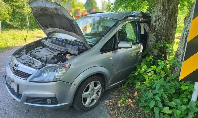 Doszło do uderzenia drezyny w tył pojazdu, a następnie Opel uderzył w drzewo.