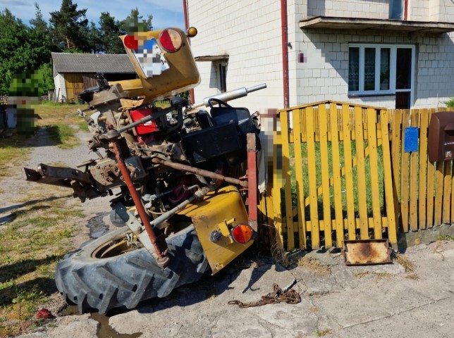 Siła uderzenia była tak duża, że w ciągniku odpadło koło i przewrócił się na bok.