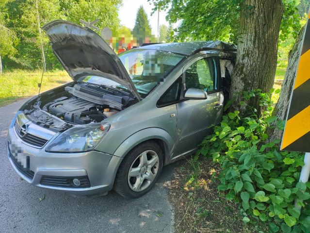 Doszło do uderzenia drezyny w tył pojazdu, a następnie Opel uderzył w drzewo.