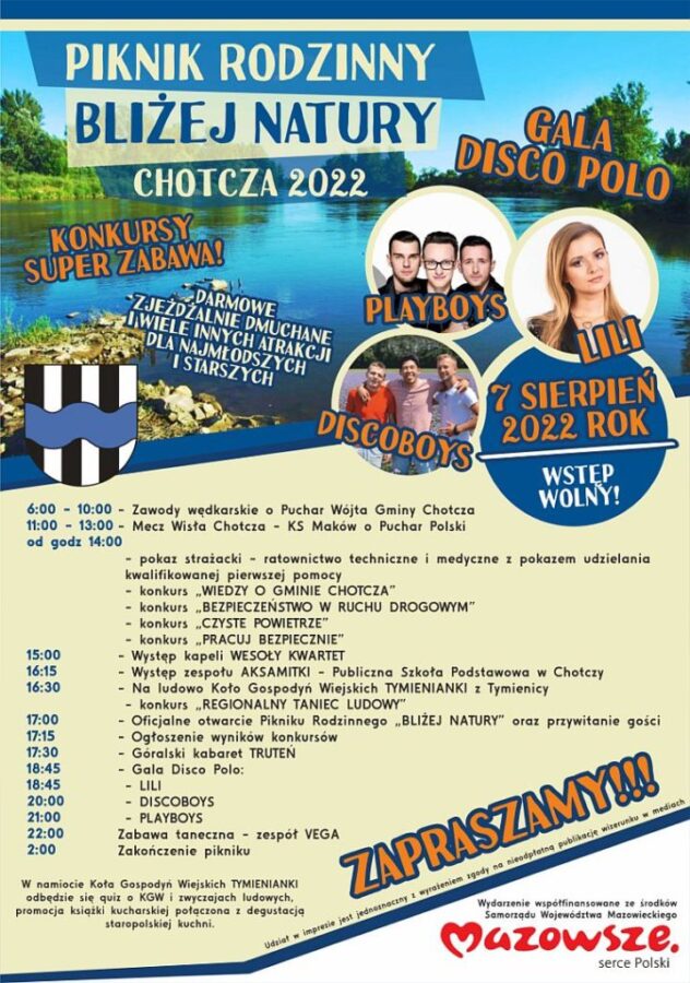 Wójt Gminy Chotcza zaprasza na Piknik Rodzinny pn. „Bliżej Natury”, który odbędzie się 7 sierpnia 2022 r.
