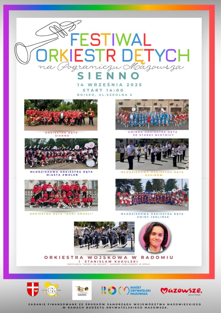 W niedzielę, 14 września 2025 roku, Sienno stanie się muzycznym sercem regionu. Tego dnia odbędzie się Festiwal Orkiestr Dętych „Na Pograniczu Mazowsza”, który zgromadzi znakomite orkiestry z różnych zakątków Mazowsza i okolic. Miejsce wydarzenia: Ośrodek Sportowo-Rekreacyjny w Siennie (ul. Szkolna 6).