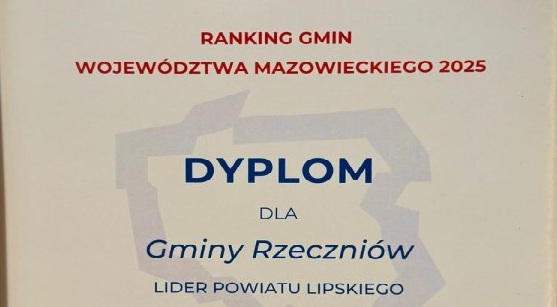Fundacja Rozwoju Demokracji Lokalnej im. Jerzego Regulskiego – Centrum Mazowsze, wyróżniła Gminę Rzeczniów jako lidera powiatu lipskiego w V edycji Rankingu Gmin Województwa Mazowieckiego, organizowanego we współpracy z Głównym Urzędem Statystycznym w Warszawie.