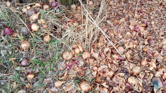Nie dość, że ledwo załadowali śmieci na przyczepkę to odkryli jeszcze istny zrzut cebuli.