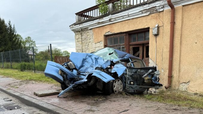 Poszkodowanego kierowcę mitsubishi z wraku wydobyli strażacy za pomocą narzędzi hydraulicznych.