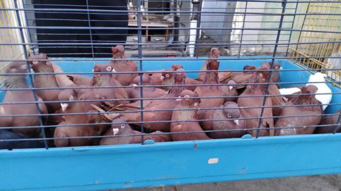 Na zdjęciach widzimy gołębie (i nie tylko) stłoczone w klatkach, napierające na siebie, praktycznie bez możliwości ruchu, bez wody i pokarmu.