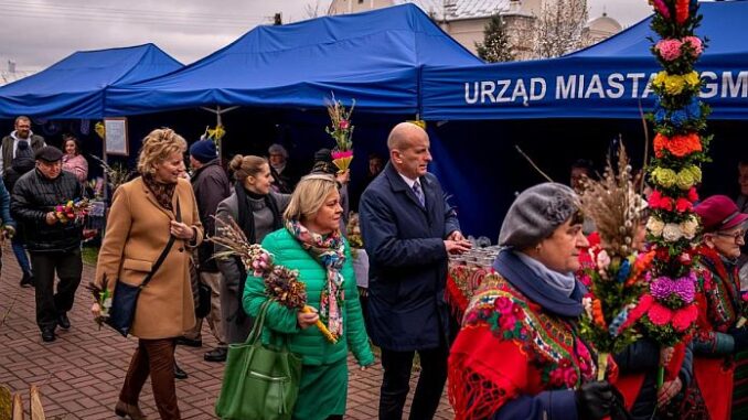 Tradycyjnie już po zakupach palm uczestnicy uroczyście przemaszerowali do kościoła pw. Wniebowzięcia NMP w Solcu nad Wisłą.