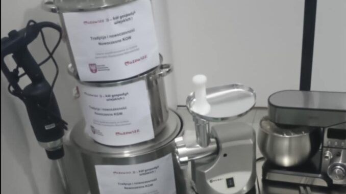 Za otrzymane środki zakupiono m.in. wałkownicę elektryczną do ciasta, robot planetarny, maszynkę wielofunkcyjną, blender przemysłowy, bemar, komplet garnków oraz trybunę bufetową, co znacząco podniesie komfort pracy gospodyń podczas przygotowywania poczęstunków. Taki zestaw urządzeń pozwala na sprawniejsze przygotowanie tradycyjnych potraw w dużych ilościach, a także na estetyczne serwowanie dań podczas festynów, dożynek i innych spotkań wiejskich.