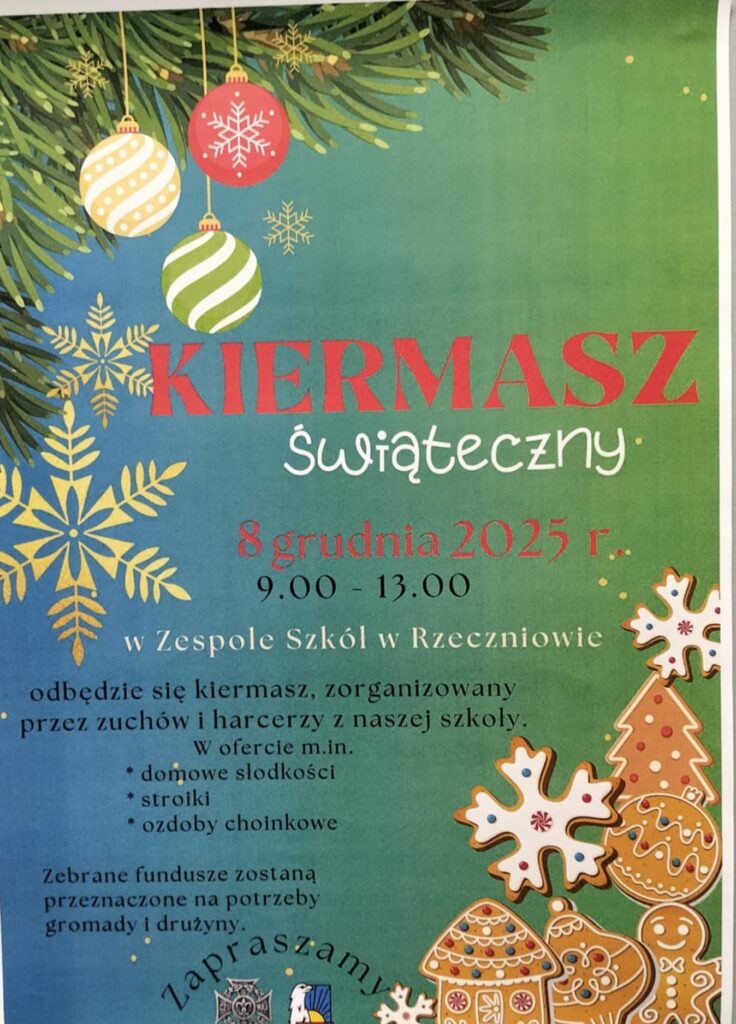 Zespół Szkół w Rzeczniowie zaprasza na Kiermasz Świąteczny.
