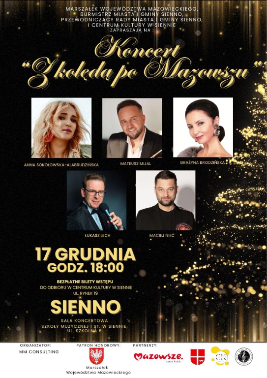 Koniec roku w Siennie zapowiada się wyjątkowo nastrojowo. Już w środę, 17 grudnia o godzinie 18:00, sala koncertowa Szkoły Muzycznej I stopnia w Siennie (ul. Szkolna 6) wypełni się dźwiękami najpiękniejszych polskich kolęd i pastorałek. Wszystko za sprawą koncertu „Z kolędą po Mazowszu” – wydarzenia, które ma wprowadzić mieszkańców regionu w magiczny klimat nadchodzących świąt.