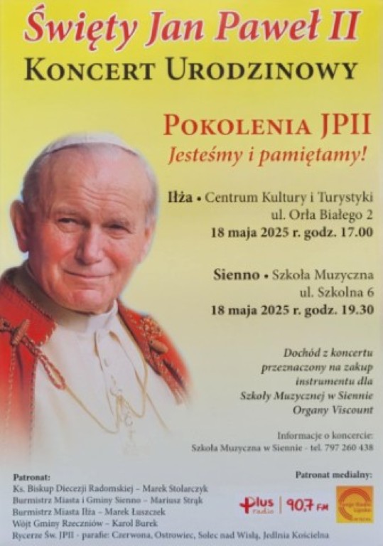 Szkoła Muzyczna w Siennie zaprasza na Koncert Urodzinowy św. Jana Pawła II