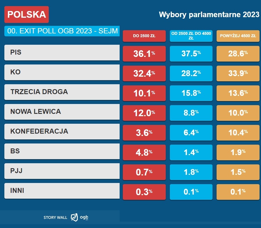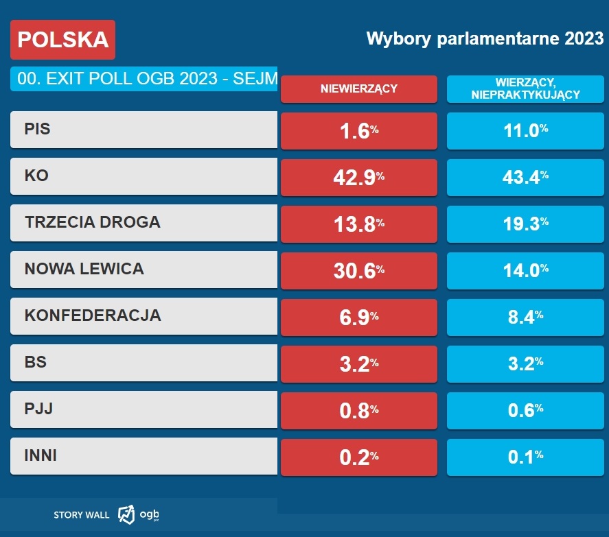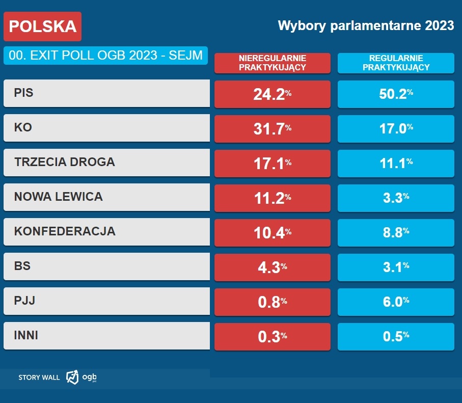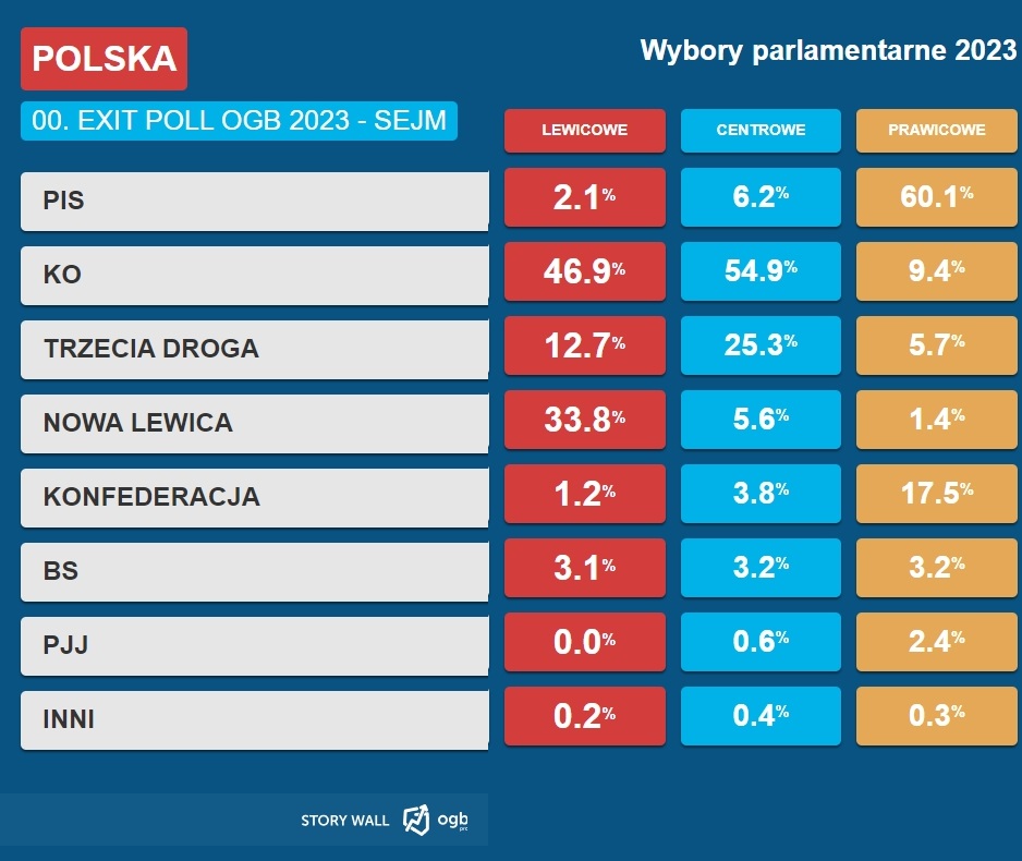 Ogólnopolska Grupa Badawcza przygotowała dla nas zestawienie przygotowane na podstawie odpowiedzi udzielanych przez osoby, które oddały swój głos w wyborach.