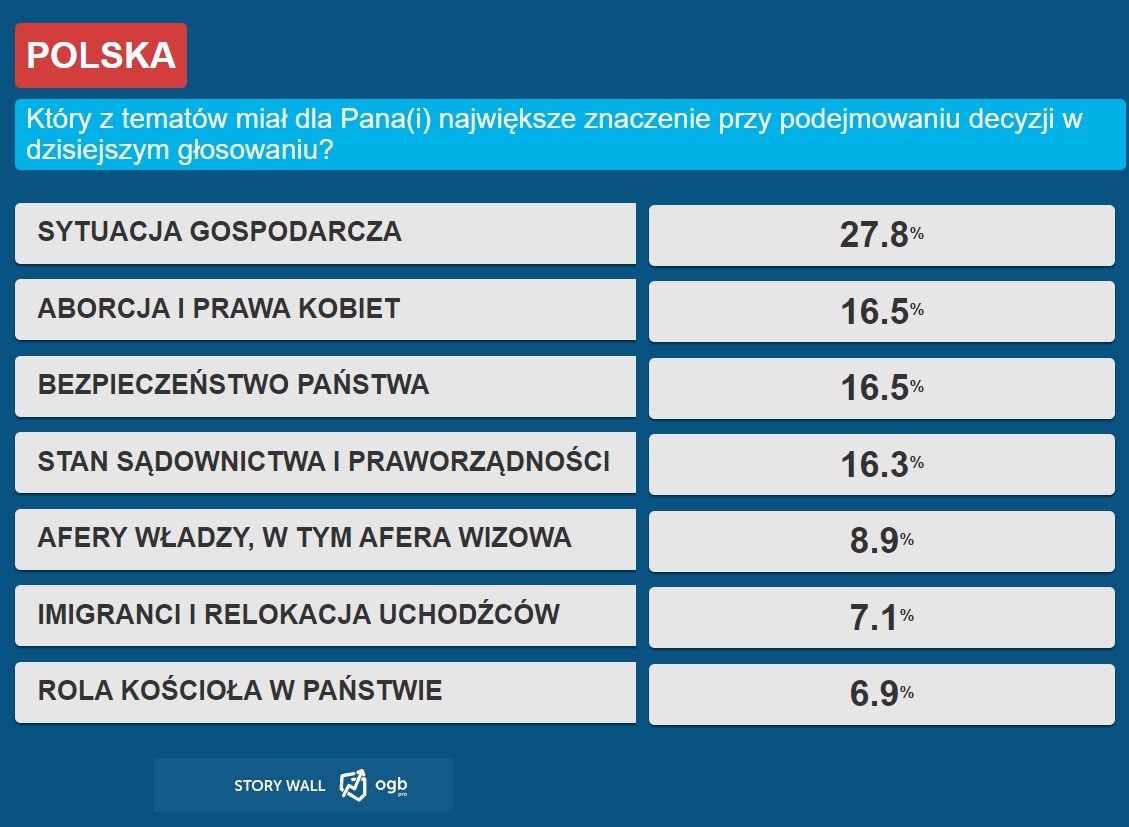 7. Prawa kobiet i Praworządność są ważne dla Polaków. Zdecydowanie wygrała sytuacja gospodarcza.