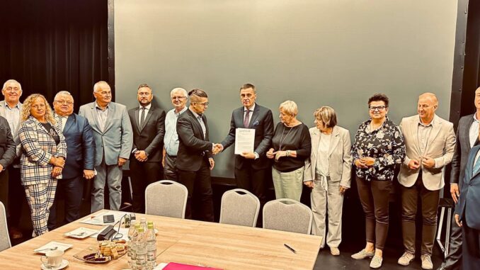 ,- zł, Burmistrz Miasta i Gminy Ciepielów Artur Szewczyk (Prezes Związku) wraz z panią Wójt Gminy Kazanów Teresą Pancerz-Pyrka ( Zarząd Związku) podpisali umowę na największe zadanie inwestycyjne w historii Związku Gmin nad Iłżanką.