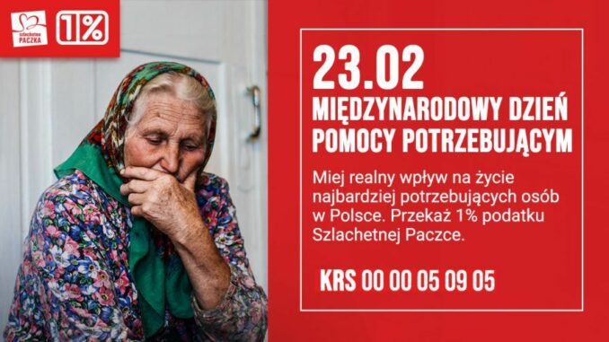 Szlachetna Paczka to jeden z największych i najskuteczniejszych programów pomocowych w Polsce, w którym wciąż konkretny człowiek pomaga konkretnemu człowiekowi w potrzebie. By jednak działać, nieść nadzieję i umożliwiać realne wsparcie, Paczka potrzebuje środków takich jak 1% podatku.