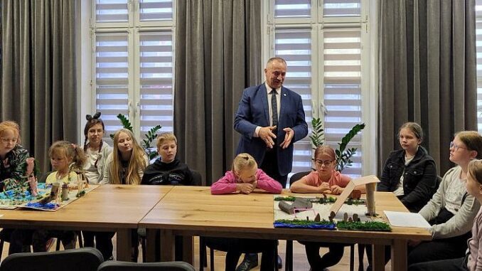 Najmłodsze pokolenie Mieszkańców zwiedziło Urząd, poznając jak wygląda tam praca. Najważniejszą częścią spotkania było przedstawienie przez dzieci postulatów oraz zaprezentowanie koncepcji rozwoju i inwestycji na terenie Sienna. Perfekcyjnie przygotowane merytorycznie, obroniły swoje pomysły przedstawiając wizualizację swoich koncepcji. Wójt odpowiedział na serię „trudnych” pytań i zapoznał ze specyfiką pracy samorządu. Największą atrakcją okazała się wizyta w gabinecie Wójta i możliwość złożenia „urzędowego” podpisu.
