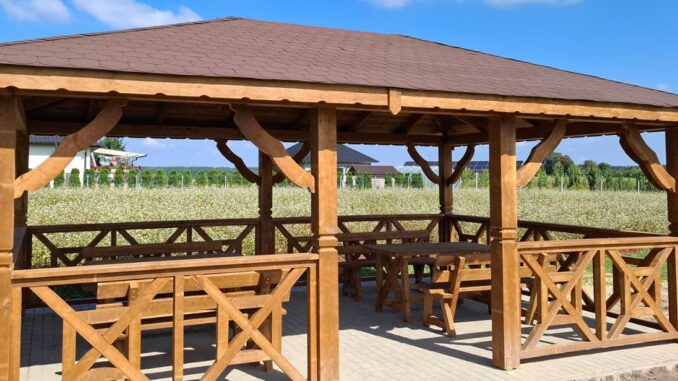 Altany zostały wykonane z drewna, a teren utwardzony stabilną kostką brukową.
