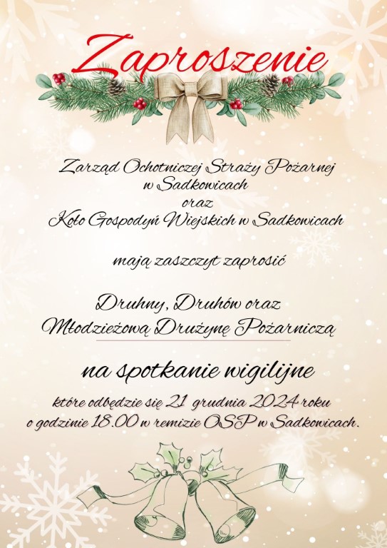 OSP i KGW w Sadkowicach zapraszają na spotkanie wigilijne 13 grudnia 2024 rafales Rozrywka 0 Czas czytania: < 1 minutę Spotkanie wigilijne odbędzie się 21 grudnia o godzinie 18. Informacja z profilu Ochotnicza Straż Pożarna w Sadkowicach Serdecznie zapraszamy druhny ,druhów oraz MDP na spotkanie wigilijne które odbędzie się 21 grudnia 2024r o godzinie 18:00 w remizie OSP w Sadkowicach kgw sadkowiceosp sadkowieWspieraj MojeLipsko – pomóż nam się rozwijać