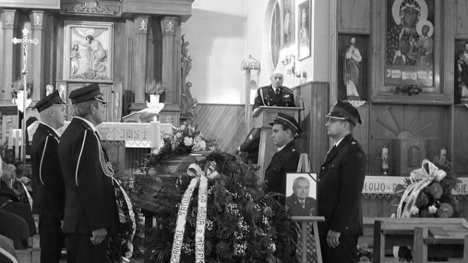 W imieniu Mazowieckiego Komendanta Wojewódzkiego PSP nadbryg. Jarosława Nowosielskiego oraz pierwszego Mazowieckiego Komendanta Wojewódzkiego PSP nadbryg. w st. spocz. Romana Kaźmierczaka, Zarządu Wojewódzkiego Związku Emerytów i Rencistów Pożarnictwa, Zarządu Oddziału Wojewódzkiego Związku OSP PSP RP, obecnych i byłych komendantów powiatowych oraz weteranów służby pożarniczej, strażaków Państwowej i Ochotniczych Straży Pożarnych, samorządowców z powiatów zwoleńskiego, kozienickiego, radomskiego i lipskiego – pożegnał w kościele st. bryg. Tomasz Krzyczkowski – Komendant Powiatowy PSP w Lipsku, jednocześnie przewodniczący Sądu Honorowego Oddziału Wojewódzkiego Związku OSP RP w Warszawie, który przedstawił życiorys i przebieg służby zmarłego oficera oraz złożył kondolencje rodzinie.