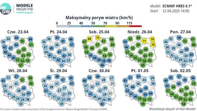 Wichura zacznie tracić na sile wraz z początkiem nowego tygodnia. Na zachodzie i południowym zachodzie poprawa będzie odczuwalna najszybciej, jednak na wschodzie silne podmuchy (do 50–65 km/h) mogą utrzymać się aż do wtorku. Stabilizacja aury w całej Polsce spodziewana jest dopiero w okolicach środy.