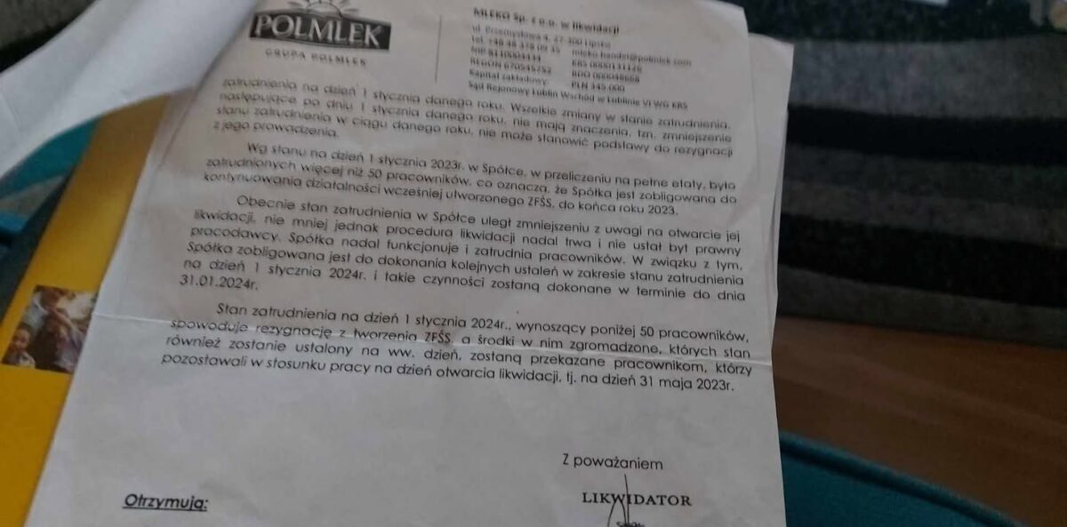LIST OD BYŁYCH PRACOWNIKÓW SPÓŁKI „MLEKO”.