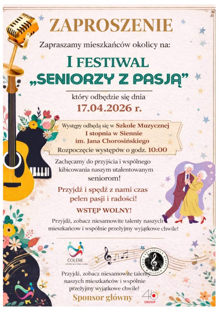 Już 17 kwietnia 2026 roku Sienno stanie się centrum artystycznej energii. Wszystko za sprawą I Festiwalu „Seniorzy z pasją”, podczas którego utalentowane osoby w jesieni życia udowodnią, że na realizację marzeń i rozwijanie zainteresowań nigdy nie jest za późno.