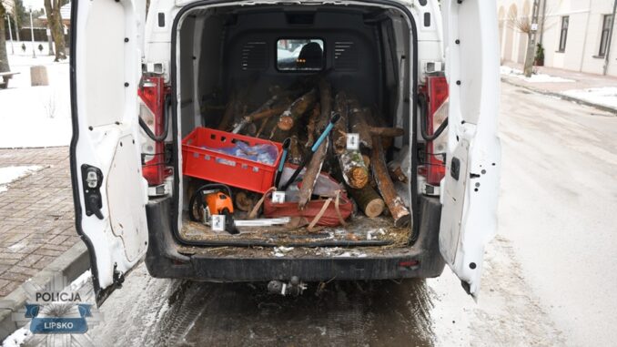 Jednak to nie koniec zaskakujących odkryć. W przestrzeni ładunkowej pojazdu funkcjonariusze znaleźli skradzione drewno, które pochodziło z pobliskiego lasu. Mężczyzna najwyraźniej postanowił wykorzystać przywłaszczony samochód do realizacji swojego planu kradzieży.