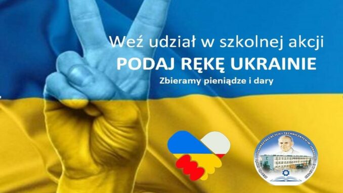 Zbiórka Zespołu Szkół Ogólnokształcących i Technicznych im. Jana Pawła II w Lipsku na rzecz uchodźców z Ukrainy.