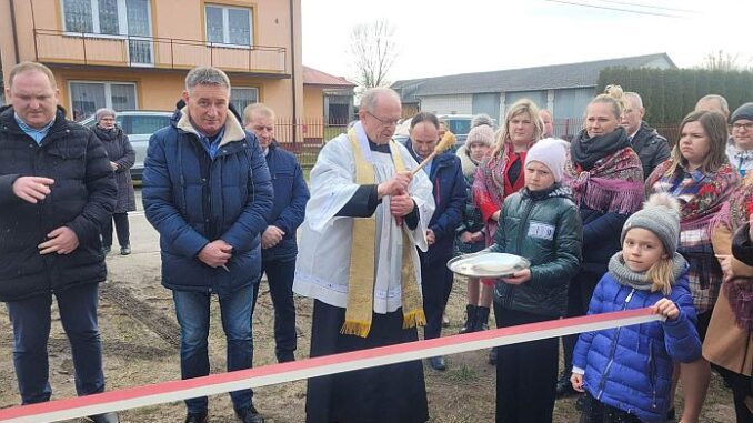 Zanim dokonano uroczystego przecięcia wstęgi, ksiądz kn. Henryk Jagieło dokonał poświęcenia budynku świetlicy i zebranych gości. Symbolicznego aktu oddania do użytku świetlicy dokonali: