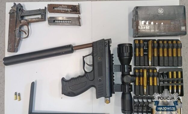 Od pewnego czasu mazowieccy policjanci wykonywali czynności związane z nielegalnym posiadaniem materiałów wybuchowych i broni. W środę (26.03) funkcjonariusze z Wydziału Dochodzeniowo-Śledczego i Kryminalnego Komendy Wojewódzkiej Policji zs. w Radomiu wraz z policjantami Komend Powiatowych w Białobrzegach, Kozienicach, Lipsku i Zwoleniu oraz Samodzielnego Pododdziału Kontrterrorystycznego Policji w Radomiu weszli jednocześnie na kilka posesji na terenie powiatu białobrzeskiego, radomskiego, lipskiego i kozienickiego. Podczas przeszukań policjanci odnaleźli broń, w tym m.in. pistolety VIS i P83, granaty, pociski artyleryjskie, pociski rakietowe oraz amunicję. Niektóre z zabezpieczonych przedmiotów pochodziły z czasów II wojny światowej.