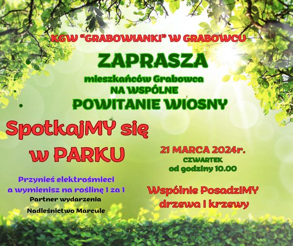 Powitanie wiosny w Grabowcu – wymiana elektrośmieci 17 marca 2024 rafales Rozrywka 0 Czas czytania: < 1 minutęKGW Grabowianki zaprasza mieszkańców na powitanie wiosny. Spotkanie w parku, w którym zostaną posadzone drzewa i krzewy. Przy okazji można wymienić elektrośmieci na roślinę. 21 marca 2024 r. od godziny 10:00. elektrośmimeciGrabowiecwiosnaWspieraj MojeLipsko – pomóż nam się rozwijać