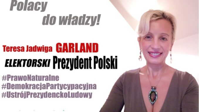 Teresa Garland, polski polityk, rocznik 1972, zwykła Polka z rejonu krakowskiego przynajmniej od kilku pokoleń, ze skromnej uczciwej i pracowitej rodziny robotniczo-chłopskiej, urodzona rzymskokatoliczka obecnie niepraktykująca, niezamężna, z wykształcenia menadżer i projektantka mody, artystka.