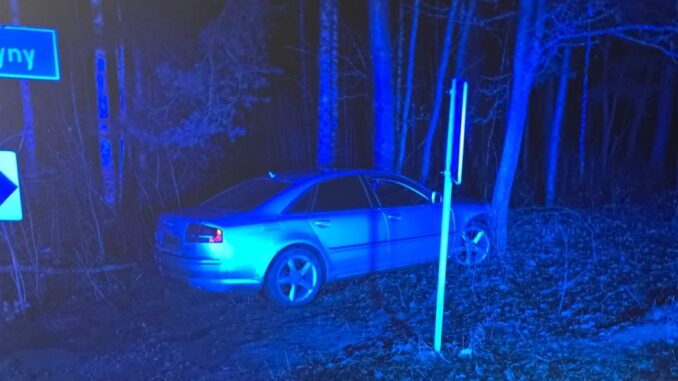 Po krótkiej chwili kierujący audi stracił panowanie nad pojazdem, zjechał do pobliskiego rowu i uderzył w drzewo.