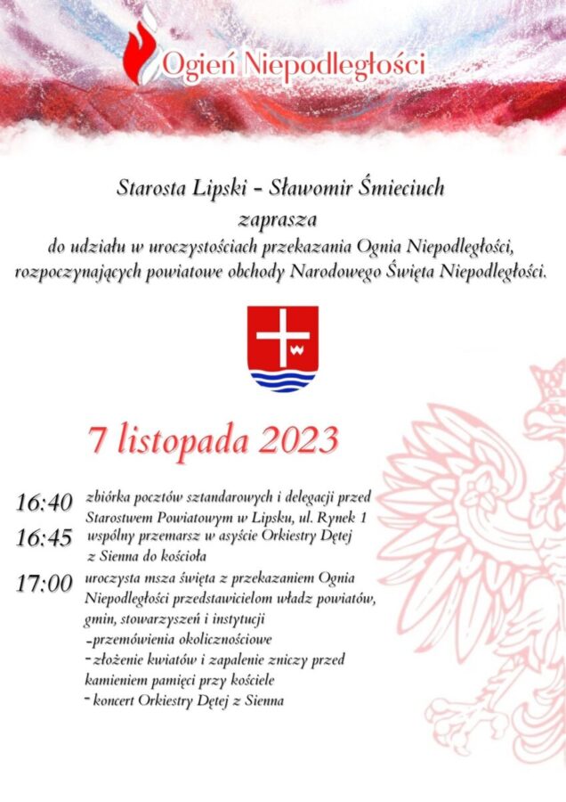 Rozrywka Przekazanie „Ognia Niepodległości” 4 listopada 2024 rafales Rozrywka 0 Starosta Lipski zaprasza na uroczystą mszę […]