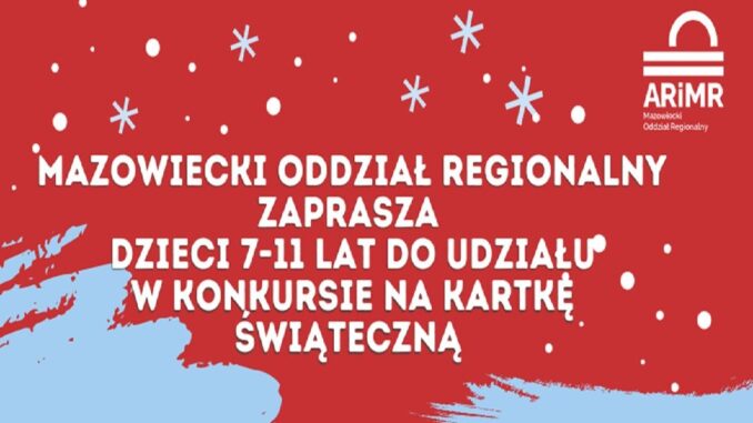 Mazowiecki Oddział Regionalny Agencji Restrukturyzacji i Modernizacji Rolnictwa zaprasza dzieci z obszarów wiejskich województwa mazowieckiego do udziału w konkursie plastycznym pn. ,,Radość Świąt – konkurs na tradycyjną Kartkę Bożonarodzeniową – edycja II ”. Celem konkursu jest rozwijanie wrażliwości artystycznej i kreatywności najmłodszych.