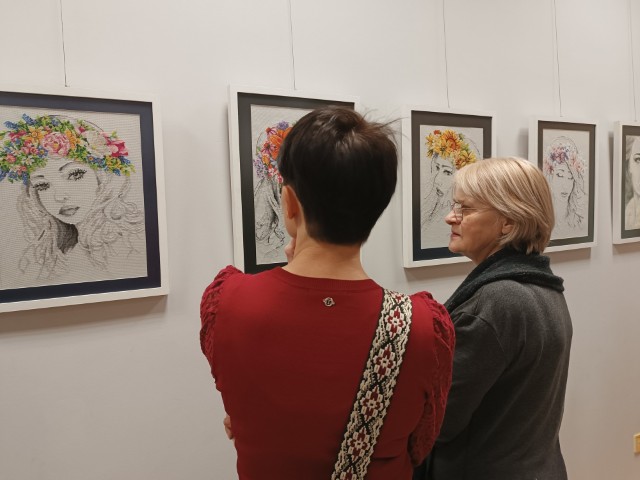 Na wystawie można było zobaczyć zarówno barwne, gęste hafty krzyżykowe Anity Wróbel, jak i bardziej oszczędne, rysunkowe kompozycje oparte na linii, wykonane przez Justynę Jaśkowską. Różnorodność stylów sprawiła, że każdy z odwiedzających znalazł coś, co przyciągnęło jego uwagę.