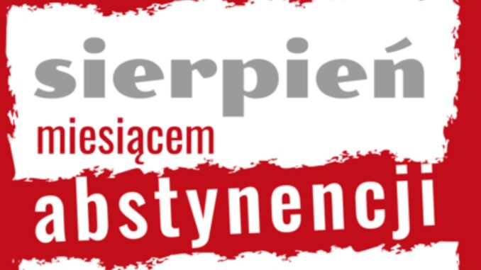 W duchu odpowiedzialności za swoje życie, za szczęście bliskich i pomyślność naszej Ojczyzny podejmijmy decyzję o sierpniowej abstynencji. Niech ten czas będzie sprawdzianem naszej wolności wewnętrznej i okazją do przywrócenia właściwej hierarchii wartości. Jeśli alkohol jest dla nas czymś ważnym, bez czego nie wyobrażamy sobie życia, musimy to zmienić. Właśnie sierpień – miesiąc abstynencji jest dobrą okazją, aby postawić na trzeźwe życie. Pamiętajmy, że dobrowolny post od alkoholu jest również szczególnym wsparciem dla osób, które walczą o swoją trzeźwość. Naszą modlitwą otoczmy osoby zniewolone nałogami i ich cierpiących bliskich.