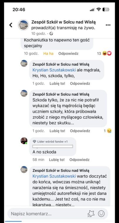 Gdy zobaczyliśmy komentarze na oficjalnym profilu szkoły to nas zatkało?