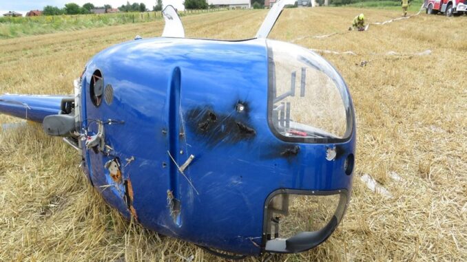 Przewody linii energetycznej zsunęły się po kadłubie, na podwozie płozowe odrywając je od śmigłowca. W tym czasie doszło do niekontrolowanego położenia śmigłowca.