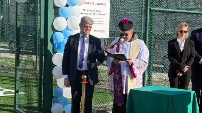 Obiekt został uroczyście poświęcony przez księdza proboszcza Andrzeja Cieszkowskiego, który w krótkim wystąpieniu życzył uczniom, aby nowa infrastruktura służyła im bezpiecznie i pomagała w osiąganiu sportowych sukcesów.