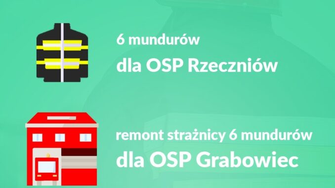 Jednostki OSP Grabowiec oraz OSP Rzeczniów na zakup po 6 szt. mundurów otrzymali 39 998 zł dofinansowania. Dodatkowo OSP Grabowiec na remont strażnicy otrzymał dofinansowanie w wysokości 25 000 zł.