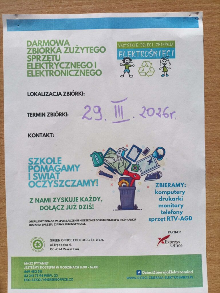 Publiczna Szkoła Podstawowa im. Stefana Żeromskiego w Woli Soleckiej włącza się w ogólnopolski projekt ekologiczny „WSZYSTKIE DZIECI ZBIERAJĄ ELEKTROŚMIECI”. Inicjatywa ma na celu edukację najmłodszych w zakresie ochrony środowiska i odpowiedzialnego pozbywania się odpadów elektrycznych i elektronicznych.