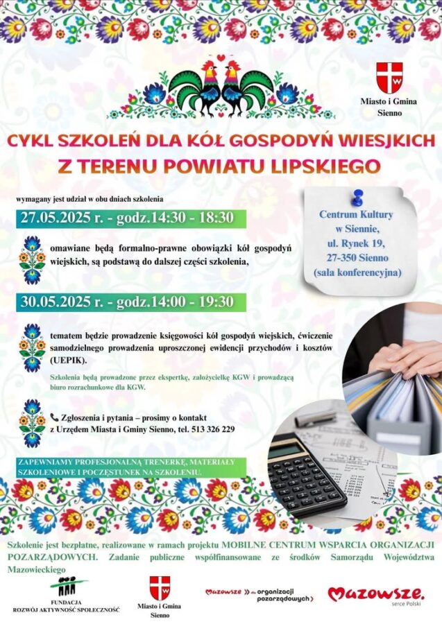 Szkolenie odbywa się w ramach projektu „Mobilne Centrum Wsparcia Organizacji Pozarządowych” dofinansowanego przez Samorząd Województwa Mazowieckiego.
