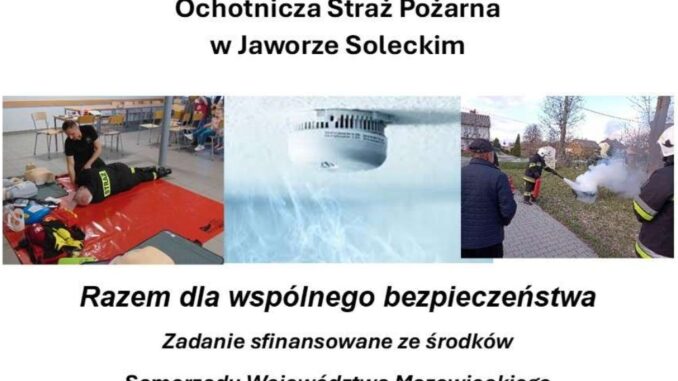 Ochotnicza Straż Pożarna w Jaworze Soleckim zaprasza na pierwsze szkolenie z cyklu trzech realizowanych w ramach zadania publicznego pod nazwą „Razem dla wspólnego bezpieczeństwa”.